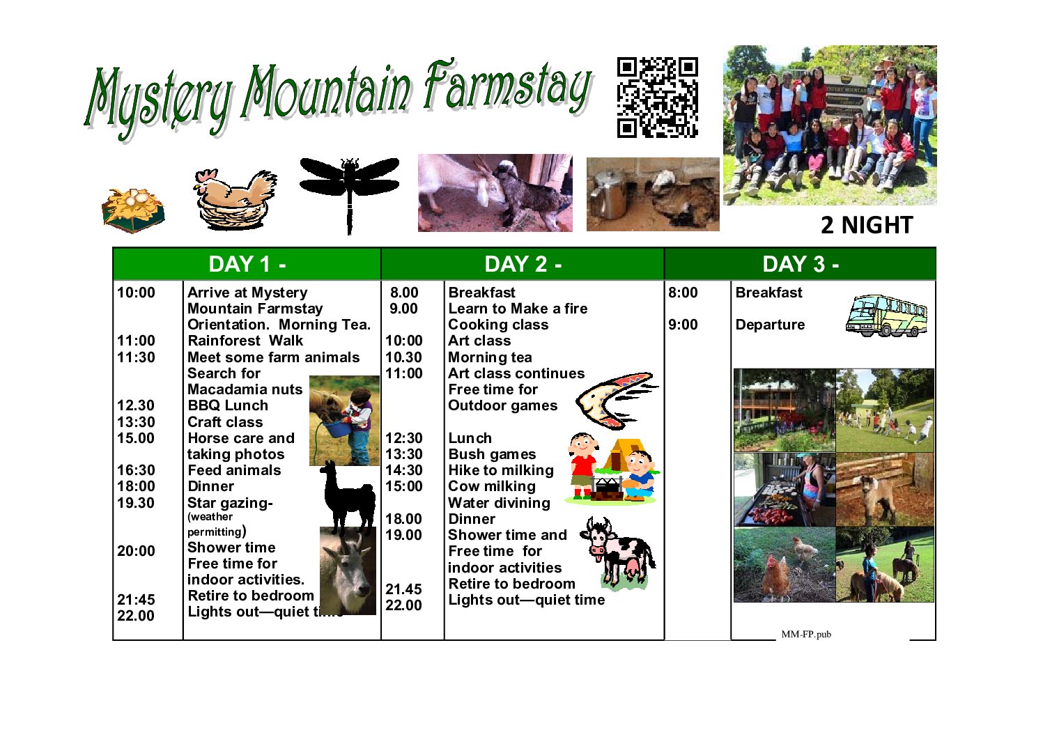 Mystery Mountain farmstay was developed specifically to cater for international school groups. It offers magnificent views. It provides high quality bunk style accommodation.