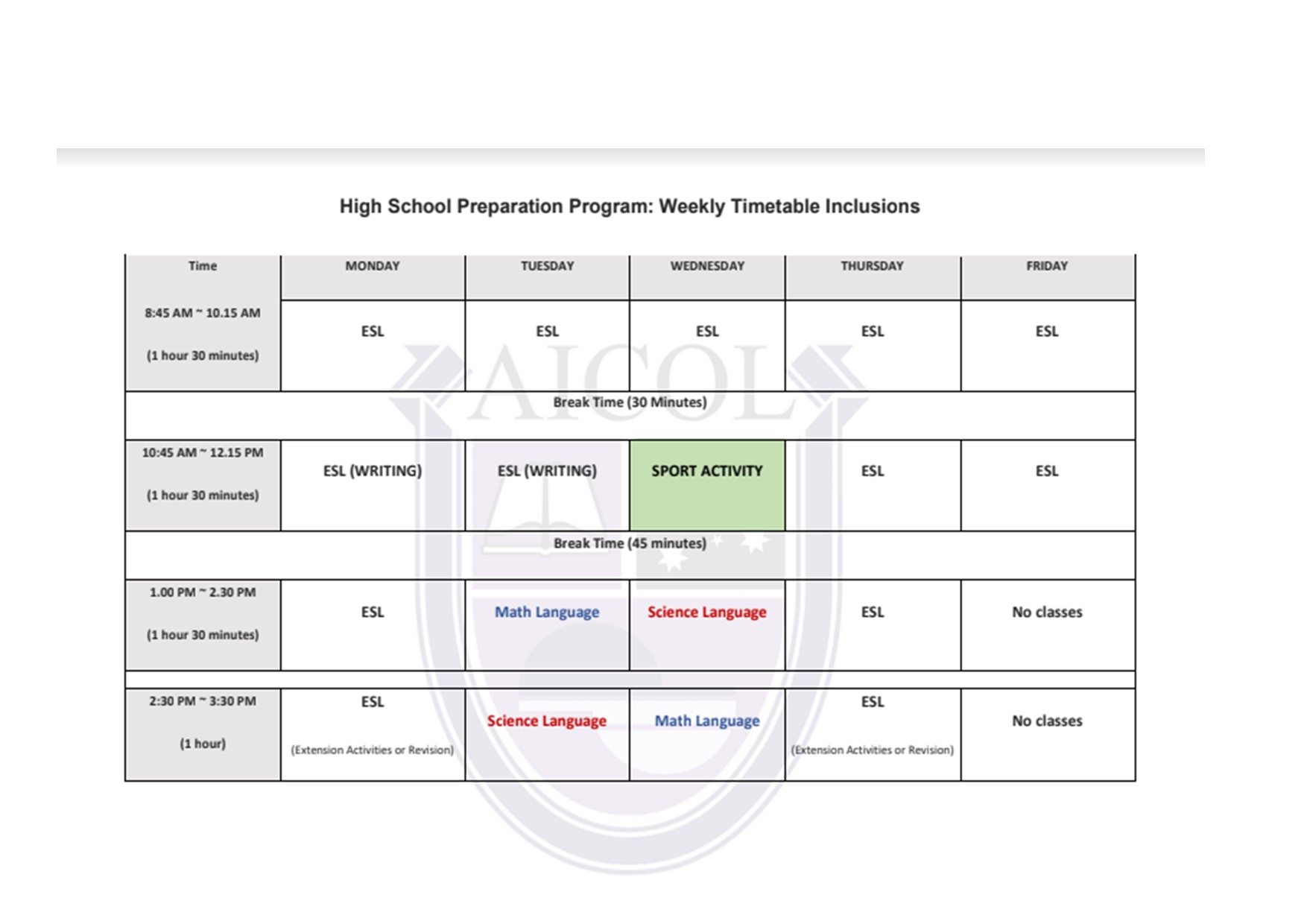 Primary School Preparation Course – AICOL PSP